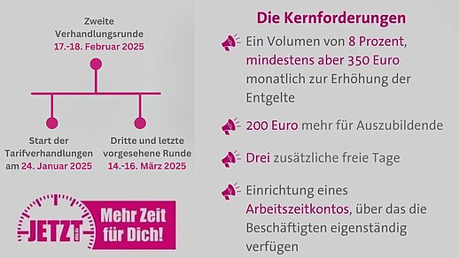 Am 24. Januar 2025 starteten die Tarifverhandlungen zum TVöD in Potsdam. Der dbb beamtenbund und tarifunion fordert eine Entgelterhöhung von 8 %, mindestens jedoch 350 Euro monatlich, sowie eine…